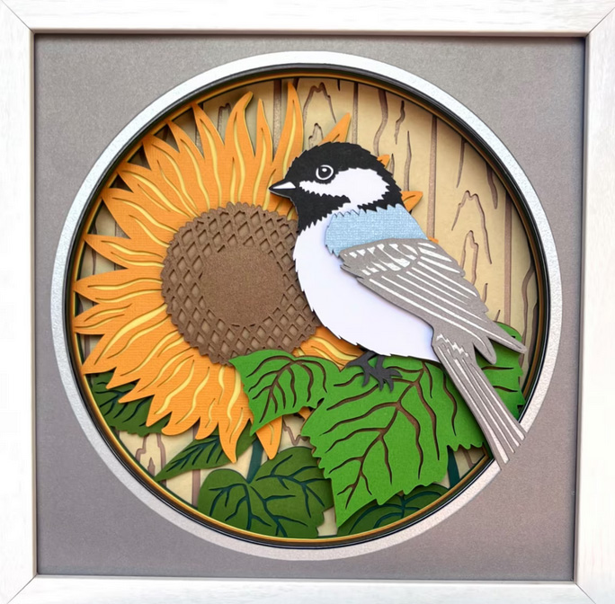 ![]() Celtic Knot – 8×8, black or white frame. 3 layers, no lights. $22.50 | ![]() Chickadee – 8×8, black or white frame. 15 layers, no lights. $22.50 | ![]() Bluebird – 8×8, black or white frame. 13 layers, no lights. $22.50 |