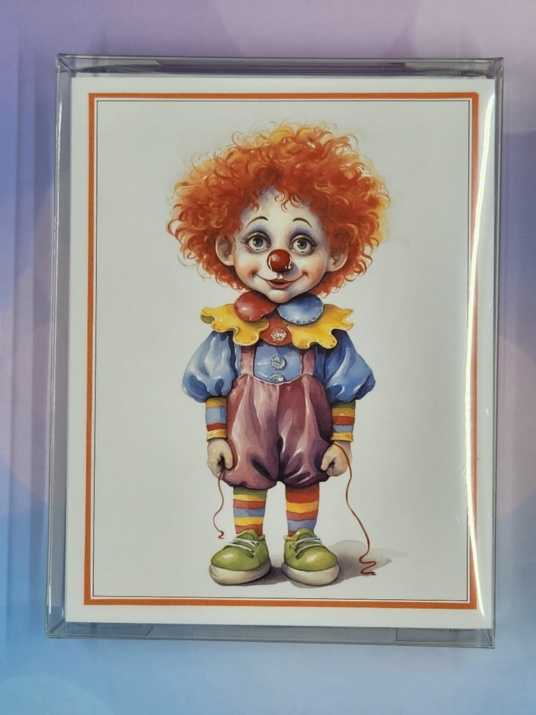 Set of 6 greeting cards – six different clown images – ready to ship – $10.00 + Shipping
